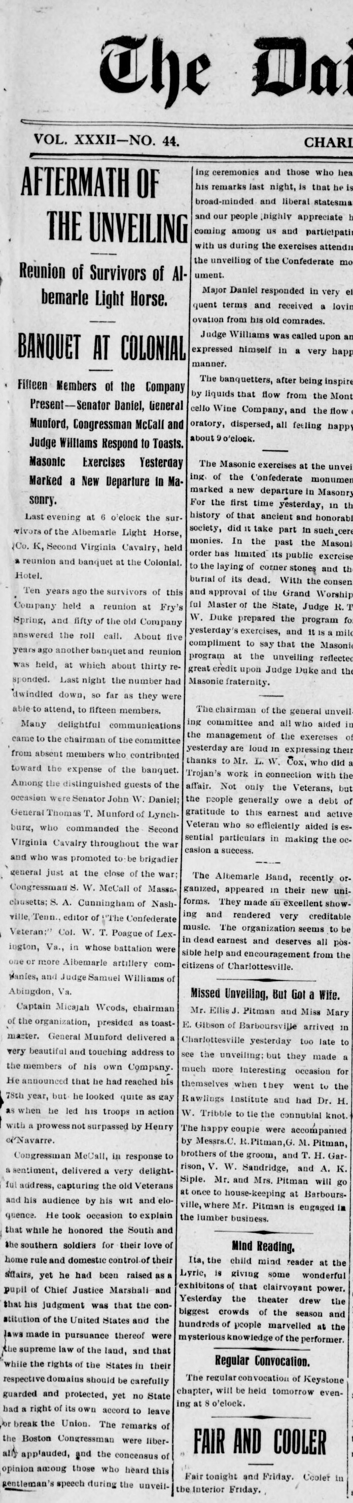 “Aftermath of the Unveiling” The Daily Progress, May 6, 1909. (Original)